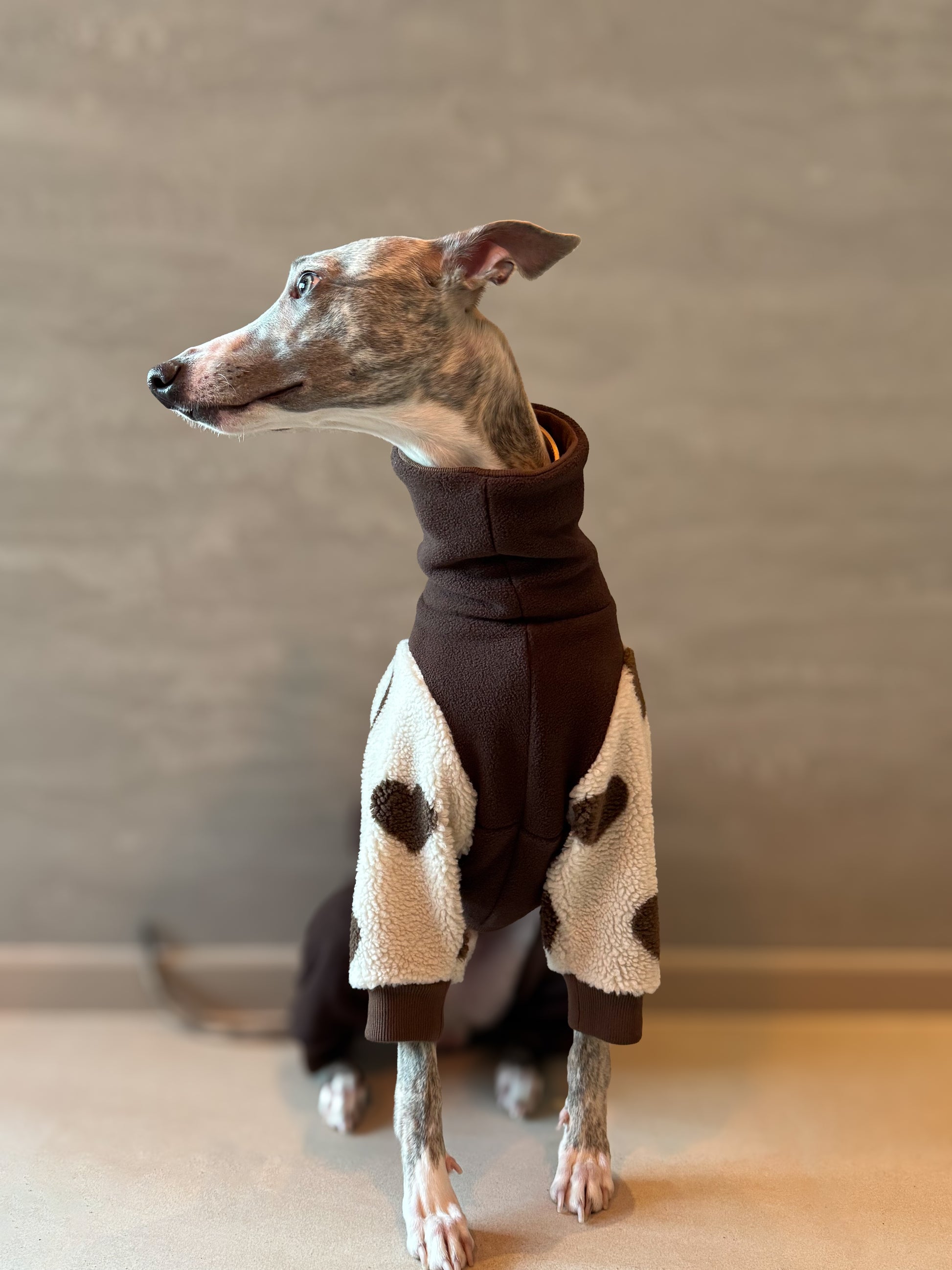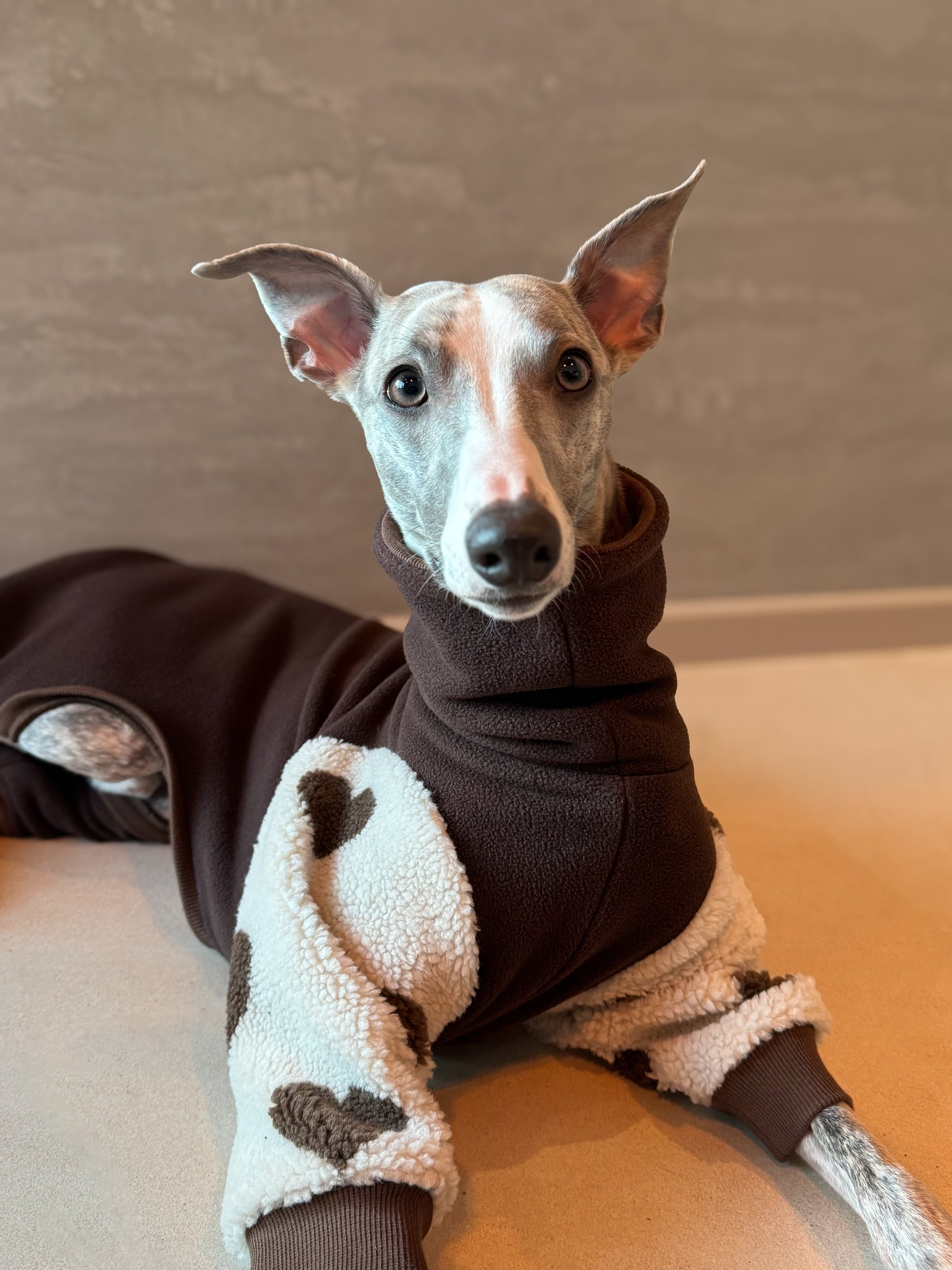 Fleece 4-Leg Jumpsuit Dark Brown Hearts